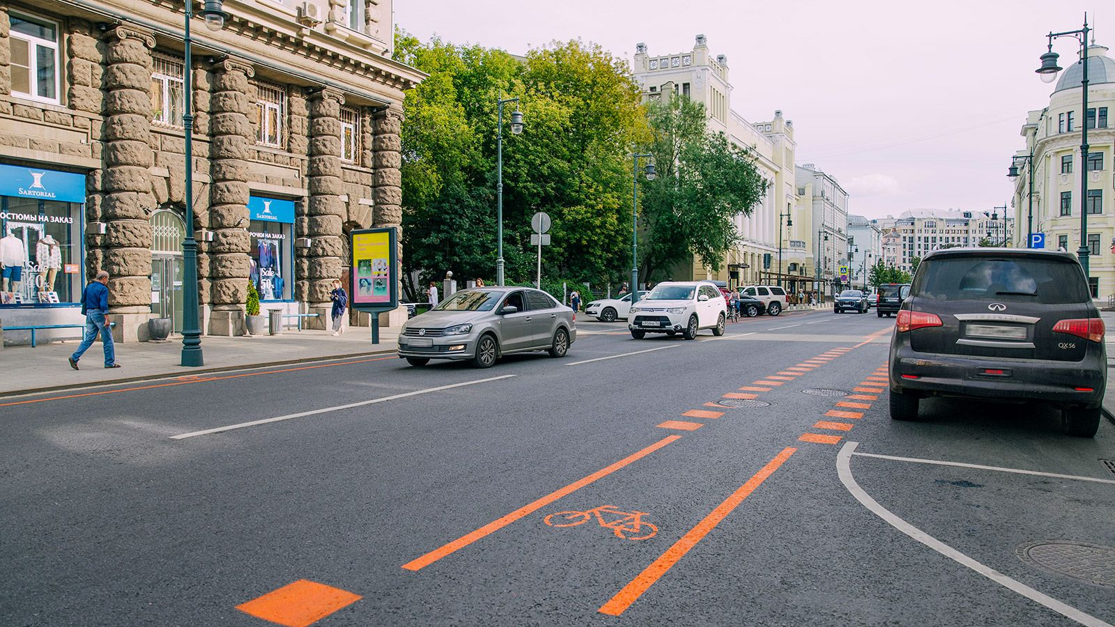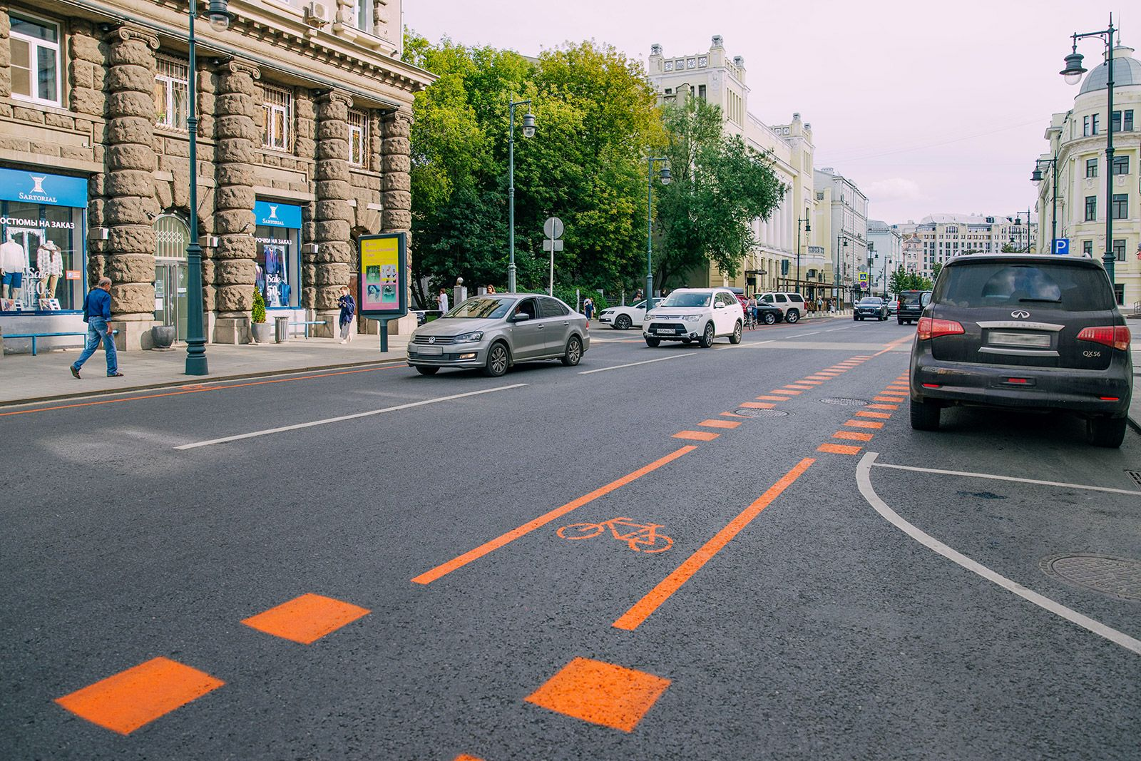 Разметку нанесли по всем правилам, консультируясь с сотрудниками «Центра организации дорожного движения Правительства Москвы» (ЦОДД). Она дополняет существующие велодорожки и замыкает маршрут от станции метро «Достоевская» до Большого театра.