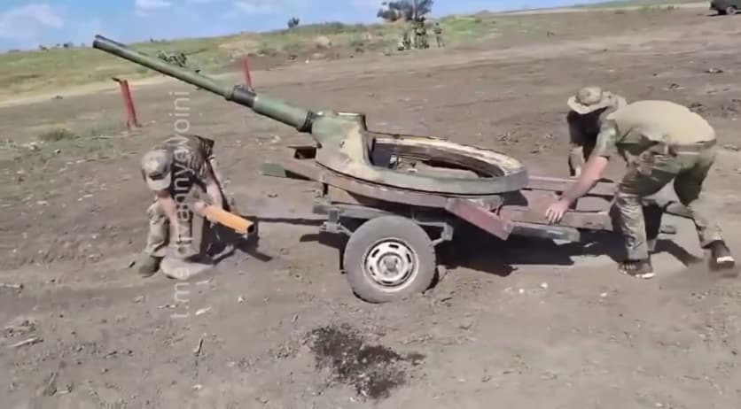 Российские военные превратили основное орудие БМП-1 в буксируемое 73-мм орудие. Они вырезали часть конструкции и смонтировали гладкоствольный «Гром» на быстро собираемое из нескольких частей основание, сообщил Telegram-канал @Divannyevoini.
