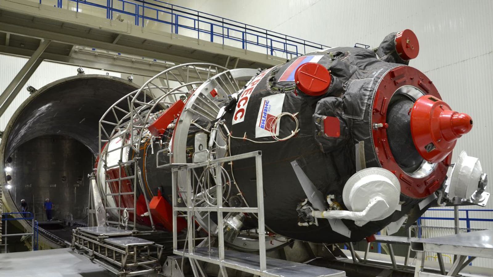 «Прогресс МС-28» разместили на ложементах вакуумной камеры после испытаний в имитаторе космоса: в безэховой камере. Их космический грузовик прошёл благополучно.