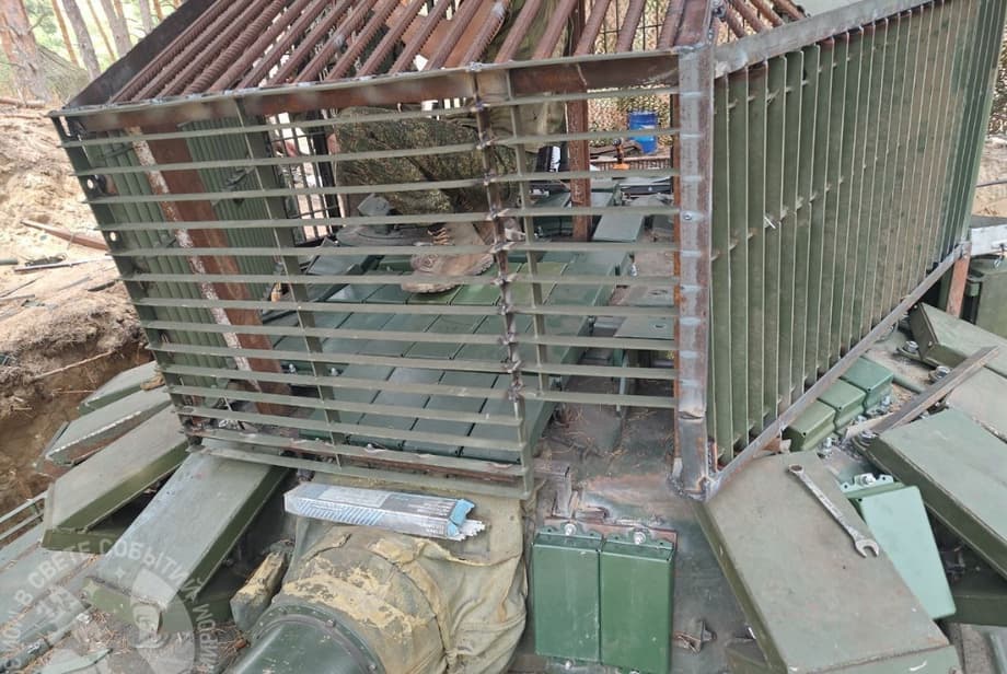Кроме того, на танк установили развитый противокумулятивно-противодронный решётчатый «козырёк», дополненный элементами 4С20 «Контакт-1» на верхнем бронелисте башни. Также машина оснащается одним из наиболее перспективных мобильных многодиапазонных высокоэнергетических комплексов РЭБ типа «Гроза.04.К» от Ростеха.