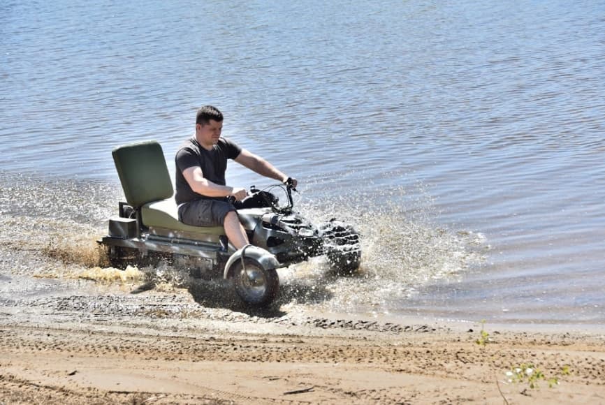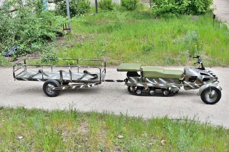 Транспортер для эвакуации раненых – это, грубо говоря, моторизированные носилки. Ведь есть разница – четыре человека будут с риском для жизни спасать товарища или один. Один человек рулит, а другого можно везти в транспортировочной тележке.