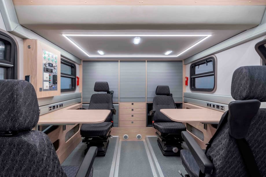 В кузове-фургоне автомобиля обустроены два полноценных рабочих места для персонала. Разработаны и места для радиоаппаратуры, и телекоммуникационные шкафы для монтажа дополнительного оборудования. Более подробные характеристики спецсредства не известны.
