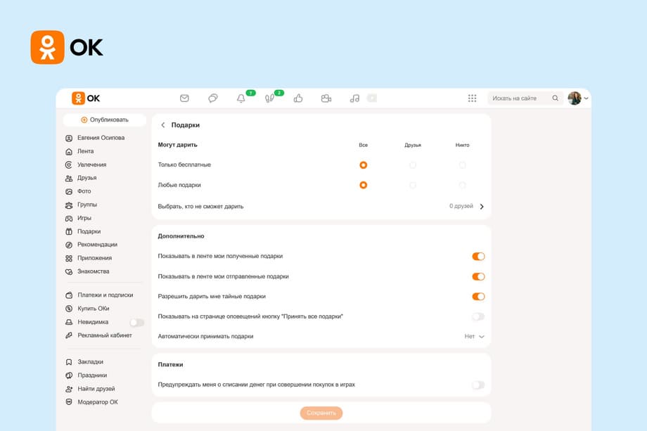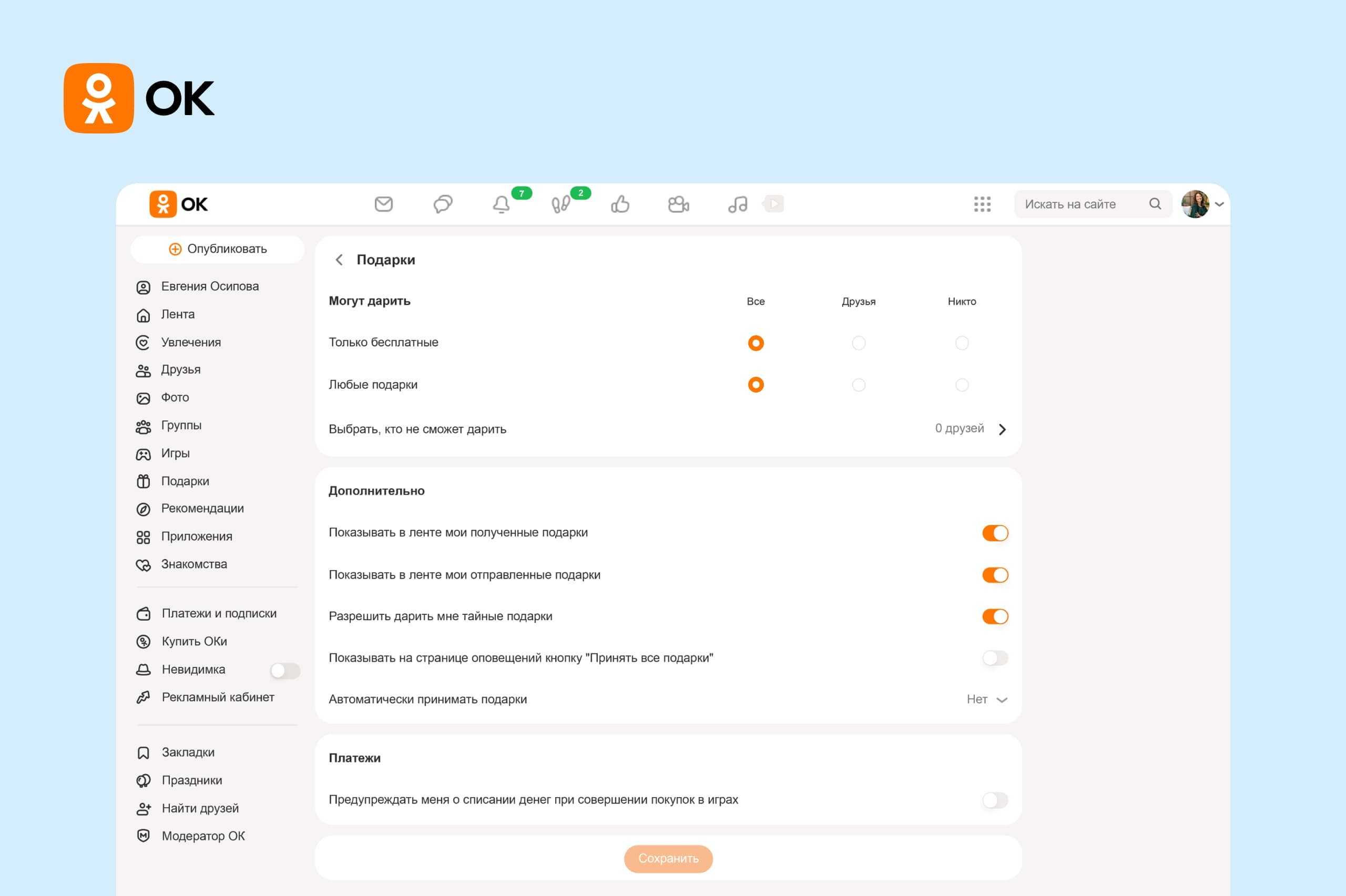 В «Одноклассниках» добавили новую функцию. Пользователям разрешили отказываться от получения виртуальных подарков и ограничивать круг дарителей. Об этом сообщила пресс-служба социальной сети.