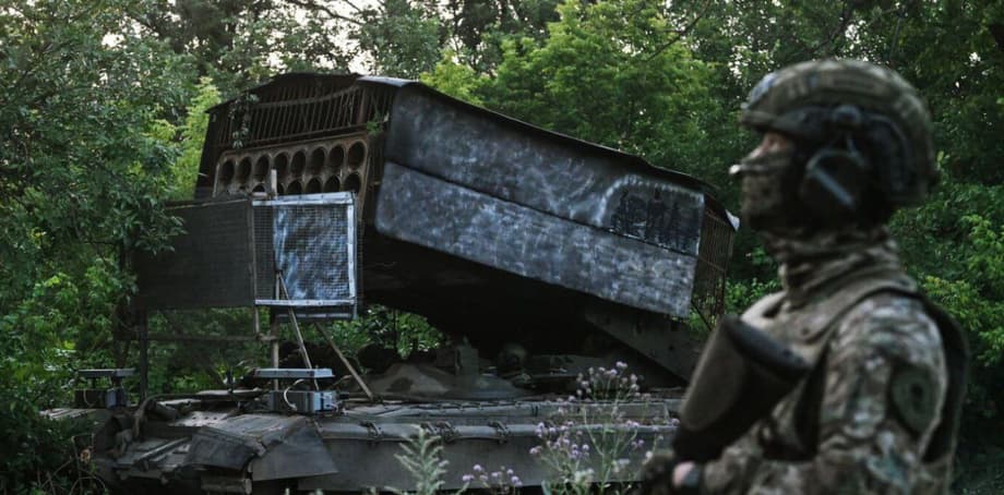 Российская тяжелая огнеметная система ТОС-1А «Солнцепёк» на передовой получила дополнительную двухъярусную защиту к штатным противокумулятивно-противодронным «козырькам». На это указал военный эксперт Евгений Даманцев.