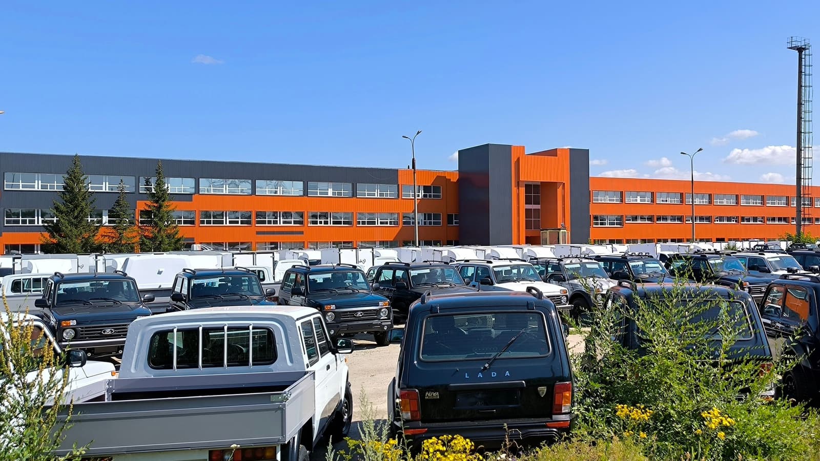 Территория предприятия заставлена новыми фургонами на базе LADA Niva и LADA Granta, а также модифицированным вариантом классической «Нивы» — LADA Niva Bronto.