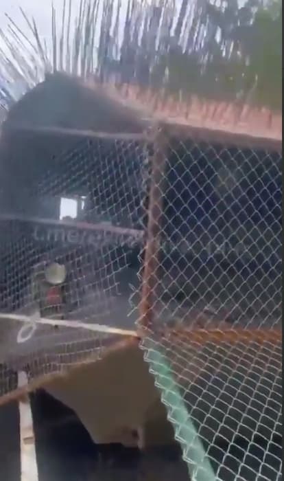 Фронтальная часть техники укрыта уже ставшей привычной антидроновой сеткой.