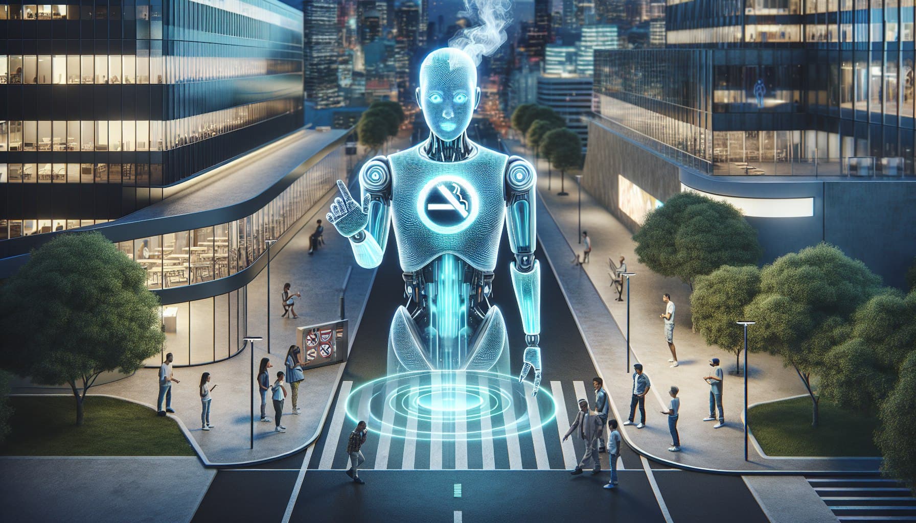 Искусственный интеллект с помощью машинного зрения наблюдает за курящим в неположенном месте и просит нарушителя прекратить. ИИ генерирует разные варианты обращений.