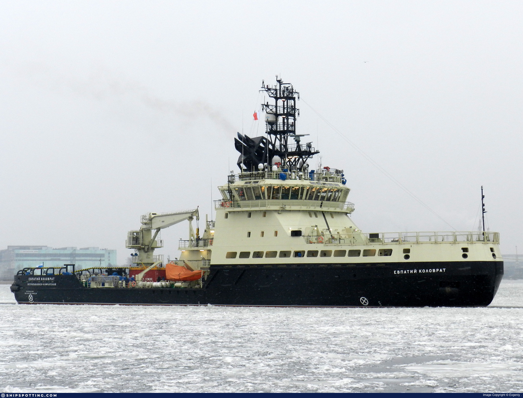 В Петропавловске-Камчатском на новейшем корабле ледового класса «Евпатий Коловрат» и на рейдовом катере РК-2188 отряда вспомогательных судов войск и сил на Северо-Востоке поднят военно-морской флаг, он принят в состав ВМФ.