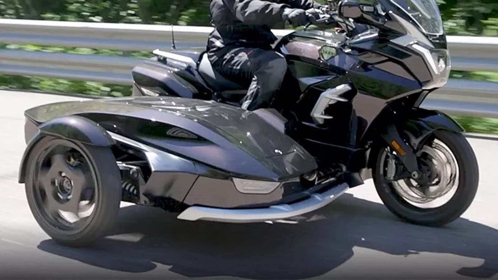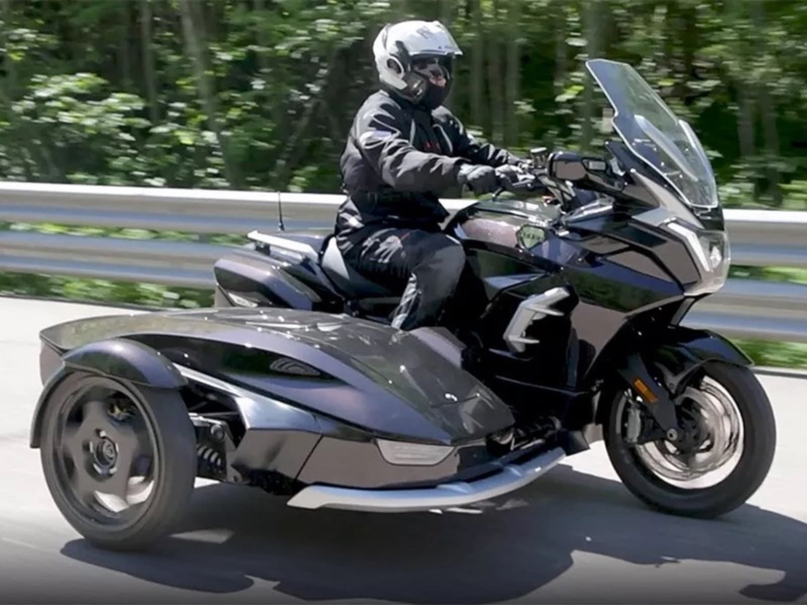 Премьера трёхколёсного мотоцикла Aurus Merlon прошла на выставке «Мотолегенды» на ВДНХ. В коляске, установленной сбоку, находится аккумулятор, ведь транспортное средство – электрическое. Посадить человека в неё нельзя.