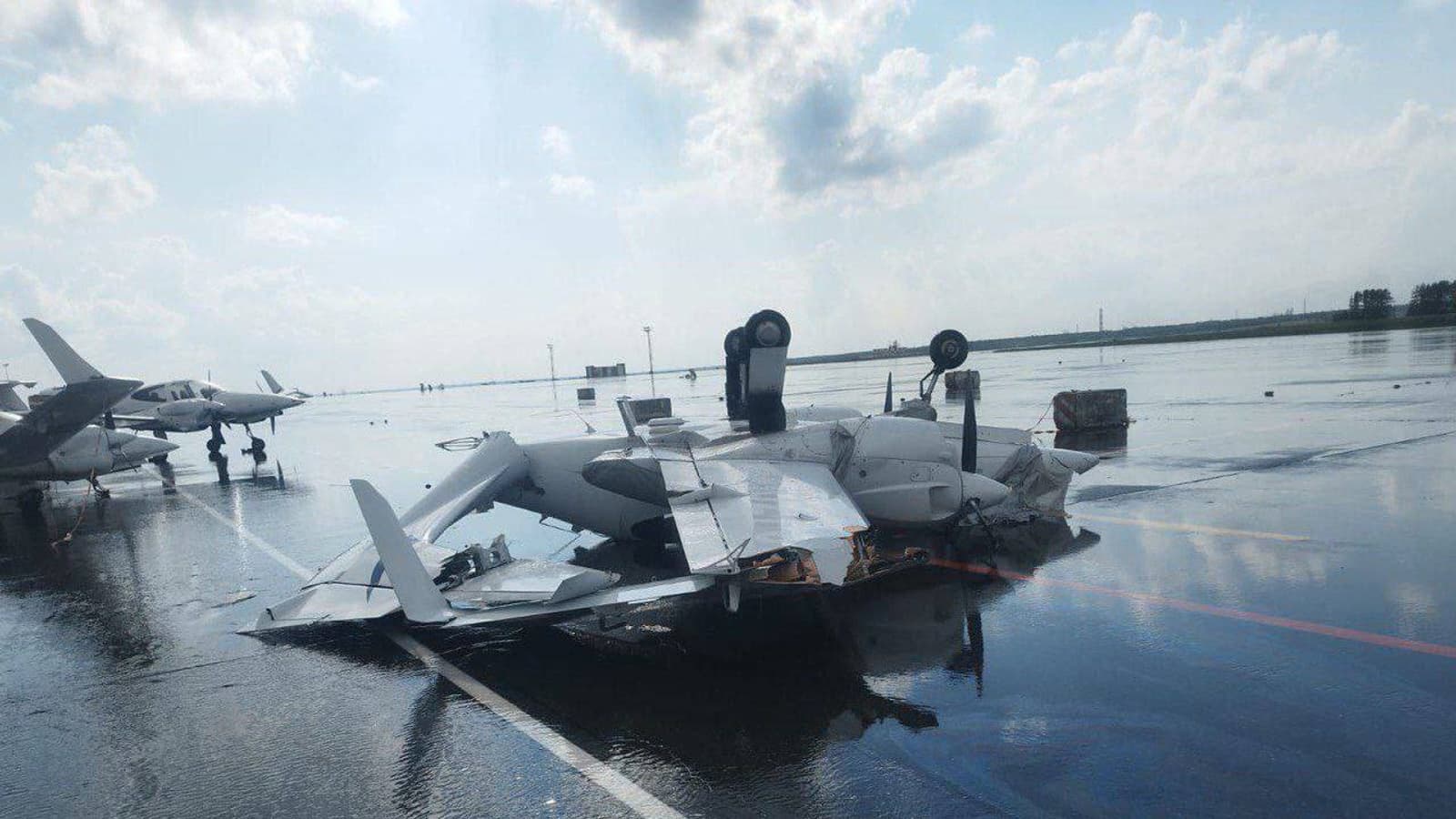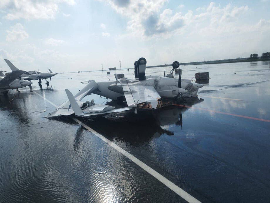 Кадры с изображением пострадавших Diamond DA42 появились в Сети накануне после того, как столицу Татарстана Казань накрыли гроза, ливень и град, а неподалёку от Казани прошёл смерч.