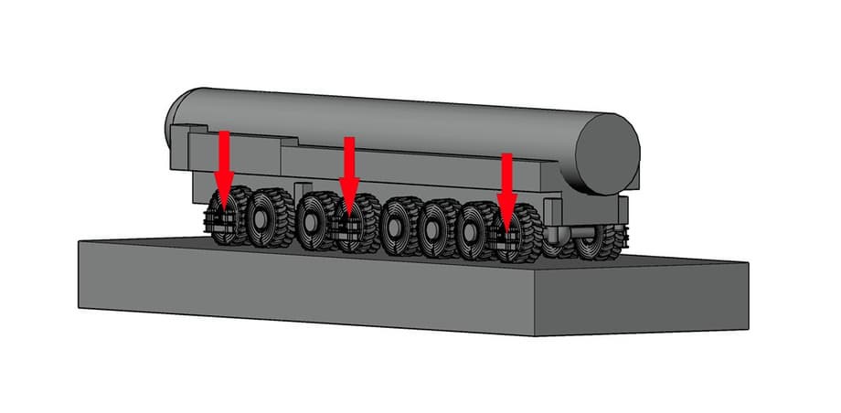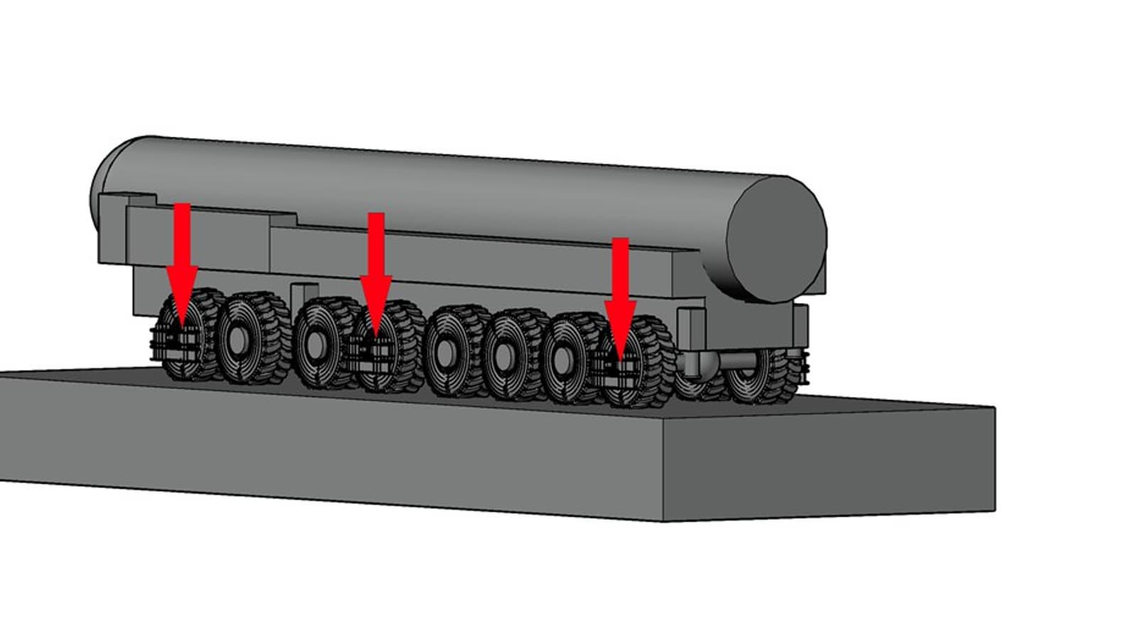 Конструкцию для колесного шасси большой грузоподъемности МАЗ-МЗКТ-79221 (используется в «Тополь-М») оснастят дополнительной балкой для повышения силы трения, тремя тележками и удлиненными колесами.
