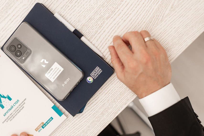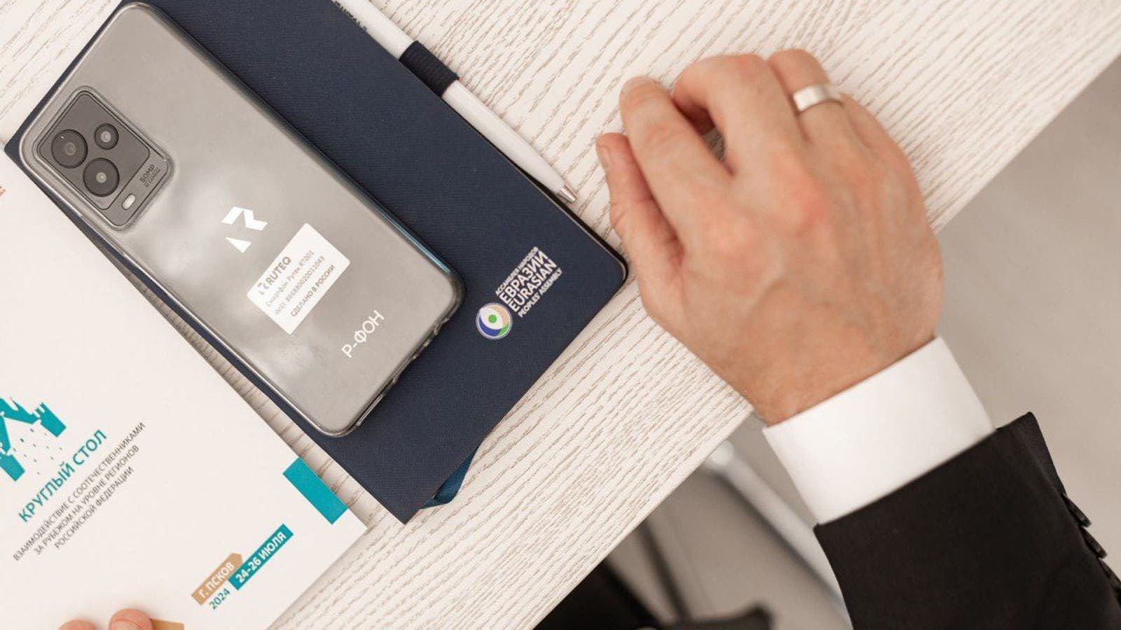 Это отечественный смартфон Р-ФОН, который мы используем в зарубежных бизнес-миссиях. Он защищённый и это важно для наших зарубежных контрагентов и партнёров. Это российские технологии, которые востребованы.