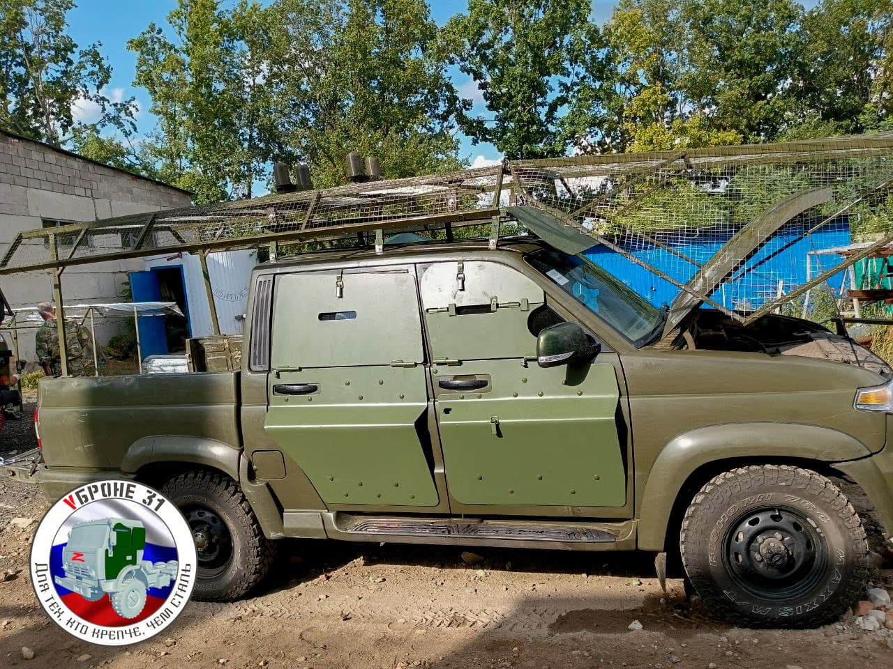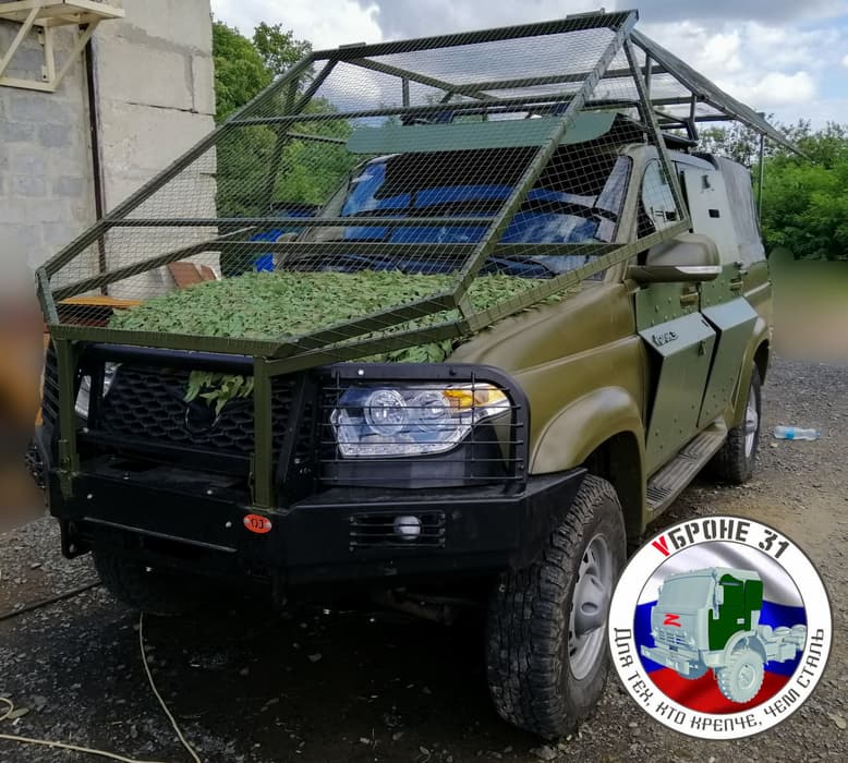 Российские военные на передовой получили автомобили УАЗ «Патриот», которые стали гораздо более защищенными. Умельцы оснастили машины бронированными накладками на двери и антидронновыми «мангалами».