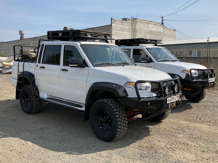 Кроме такого обвеса на транспортные средства монтируют силовые бамперы: «кенгурятники» точно не будет лишними в ходе эксплуатации на пересеченной местности.