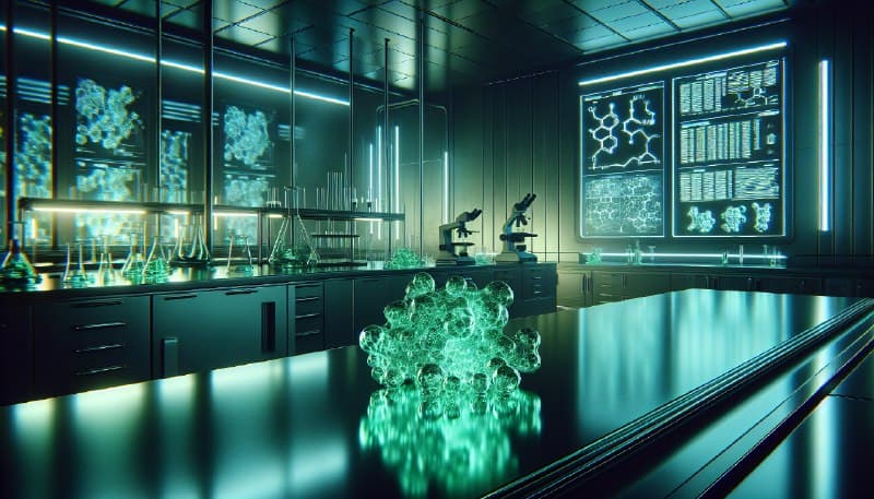 МОК способен поглощать ультрафиолет и трансформировать его в ярко-зеленый свет. В составе материала — ионы редкоземельного металла тербия и сложно устроенные органические молекулы. Сила излучения МОК позволяет использовать его в качестве высокочувствительных детекторов различных химических веществ.