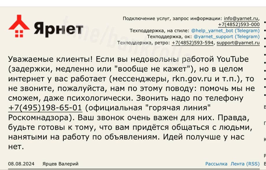 Отдельные провайдеры, в свою очередь, начали предлагать россиянам жаловаться на замедление YouTube прямо в Роскомнадзор: