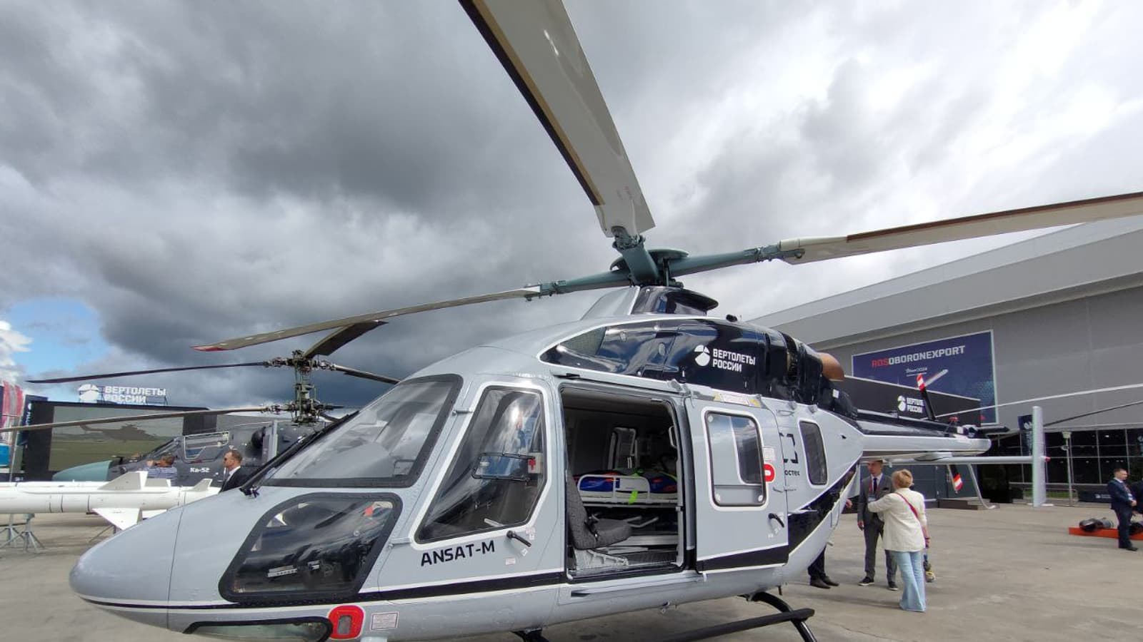 Холдинг «Вертолеты России» (входит в ГК «Ростех») показал импортозамещенный легкий вертолет Ансат на форуме «Армия-2024». Он оснащен медицинским модулем для транспортировки пострадавших и больных.
