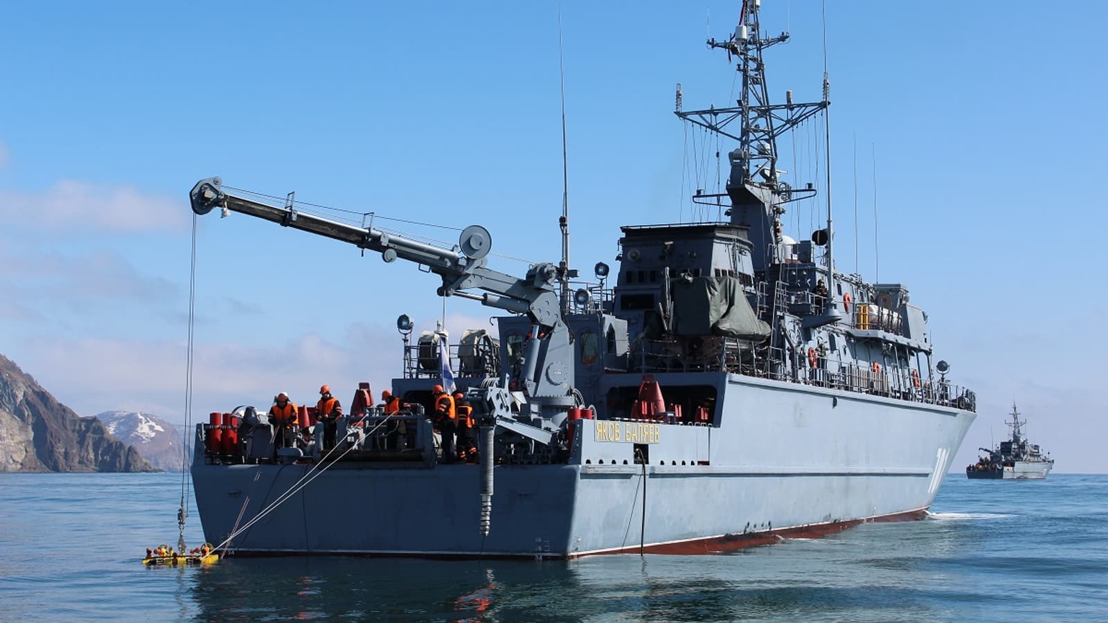 При выходе из Авачинской бухты тральщики выполнили задачи противодиверсионного дозора и приступили к контрольно-разведывательному поиску и обнаружению мин на маршруте перехода. Для поиска мин моряки используют современные автоматические комплексы «Диез» и гидроакустические станции для поиска мин «Ливадия-МЭ».