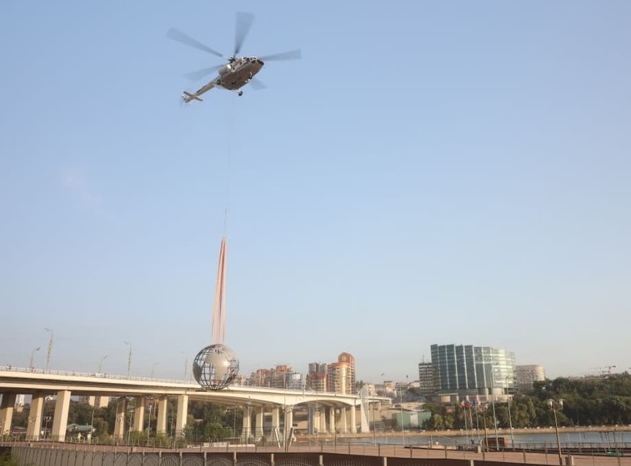 Вертолет Ми-8АМТ, созданный холдингом «Вертолеты России» (входит в ГК «Ростех»), помог установить арт-объект «Планета любви» в парке Левобережный Ростова-на-Дону.