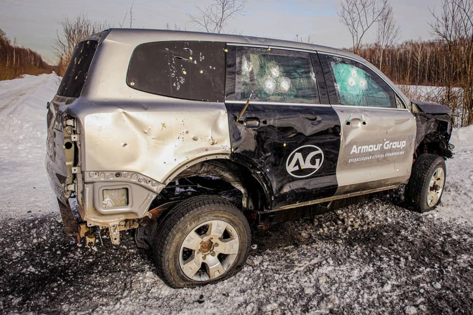 На полигоне по машине стреляли из обычного автомата Калашникова (АК74-7Н10), его модернизированной версии (АКМ-57-Н-231), а также из двух пистолетов – Ярыгина с бронебойным патроном (ПЯ-7Н21 ), а также СР1М-7Н28. Кроме этого, машину подрывали гранатами РГО и Ф1. Автомобиль от Armour Group выдержал испытания.