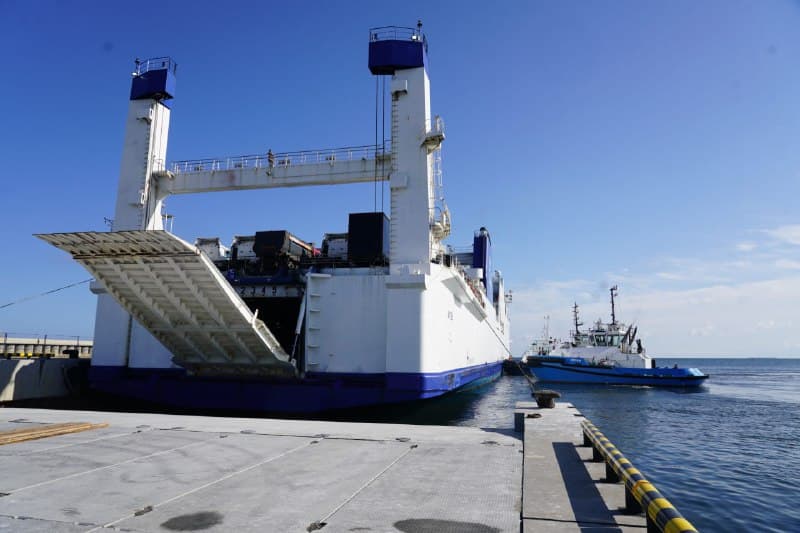 Терминал успешно принял грузопассажирский паром «Антей». Он предназначен для транспортировки техники и пассажиров.