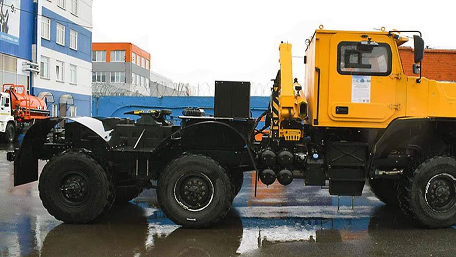 Первый грузовик был собран в июле этого года. Его укомплектовали краново-манипуляторной установкой. Арктический вездеход будет «обут» в шины низкого давления, когда прибудет на Крайний Север.