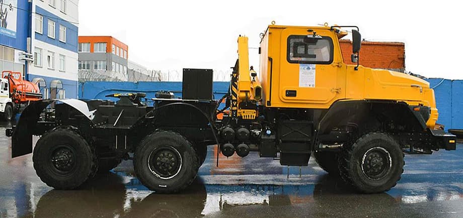 Машина с колёсной формулой 6x6 оснащается дизельным турбированным двигателем ЯМЗ-53613-10 мощностью в 310-лошадиных сил. Коробка передач имеет девять ступеней.