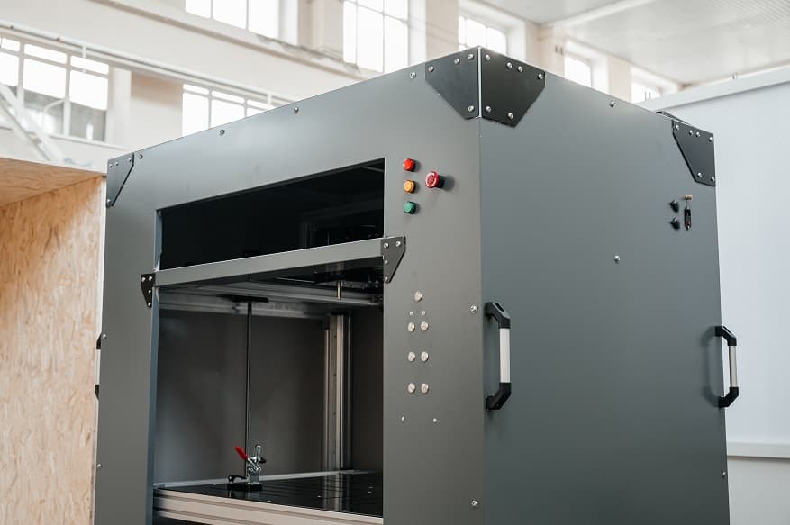 Стационарная установка термоакустического контроля для поиска дефектов в композитах по принципу своей работы напоминает 3D-принтер, но вместо печатающей головки здесь установлены инфракрасная камера и устройство ультразвуковой стимуляции. Их перемещение, а также перемещение стола, на котором удерживается объект контроля, реализуется с помощью моторизированной системы. Управление системой перемещения осуществляется посредством кнопок на панели установки, а процедура контроля — с помощью удаленного компьютера. Система управления и программное обеспечение полностью разработаны командой Инженерной школы неразрушающего контроля и безопасности, в которую вошли научные сотрудники, инженеры, аспиранты и студенты.