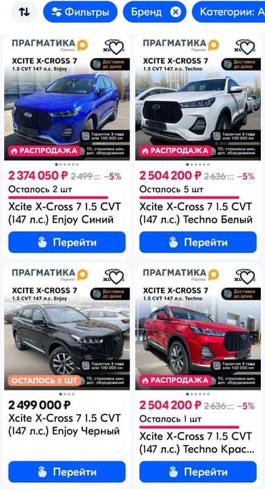 По данным Ozon, россияне с начала продаж Xcite X-Cross 7 на маркетплейсе уже заказали автомобиль свыше 570 раз. Основная масса заказов Xcite X-Cross 7 пришлась на Москву, Московскую область и Санкт-Петербург.