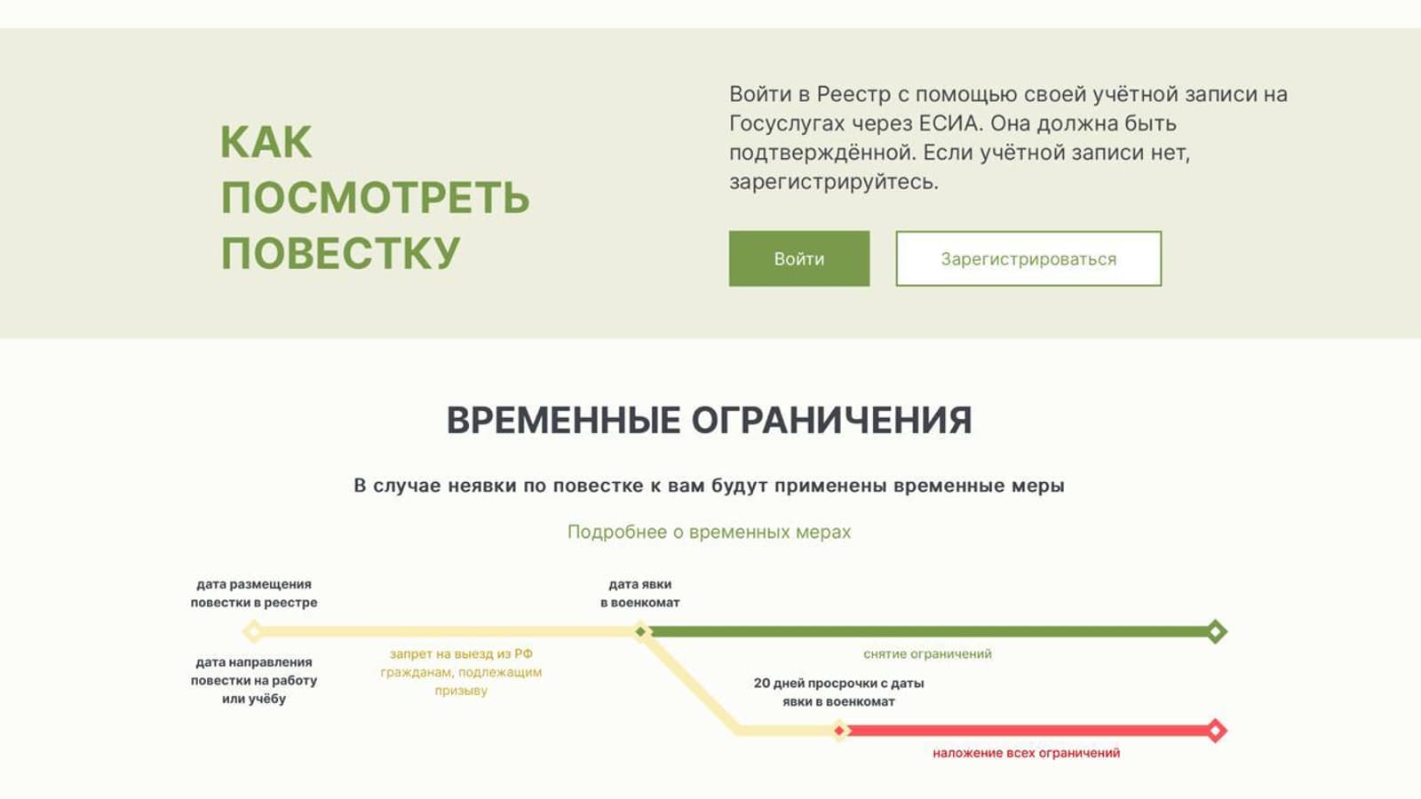 С даты, когда повестка размещена в Реестре повесток, гражданам, подлежащим призыву на воинскую службу, запрещается выезд из России