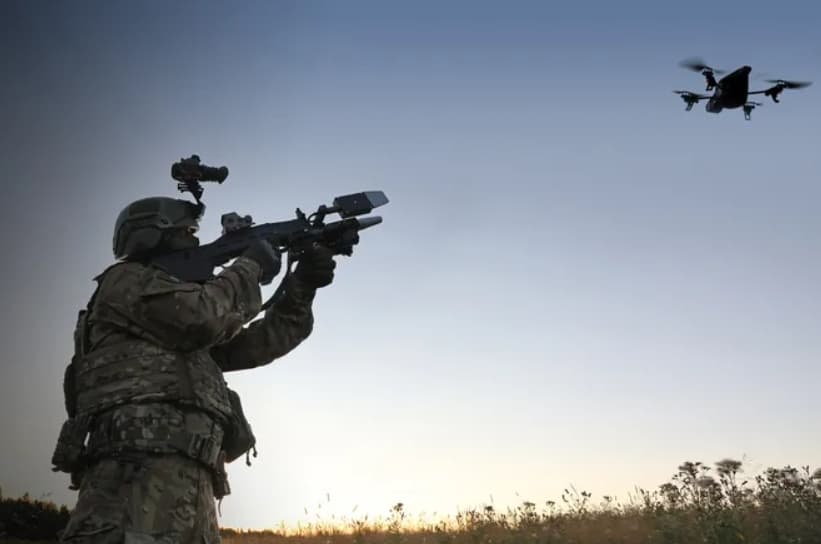 Весь комплект состоит из насадки, которая несет один боеприпас, патронов 12-го калибра и холостых патронов. «Дронобой» устанавливают вместо дульного тормоза автомата. Специальные патроны содержат 80-100 граммов твердой дроби, которая может поразить подлетающий FPV-дрон.