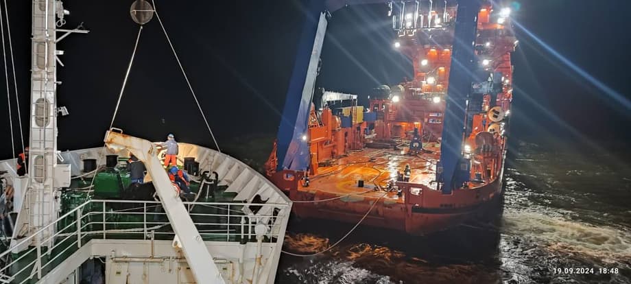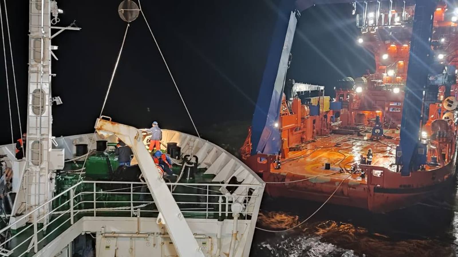 Благодаря слаженным действиям экипажа обоих судов, в суровых морских условиях закрепление троса прошло успешно, и уже в 20:00 караван начал движение в направлении порта Мурманск. На данный момент скорость движения судна 4-5 узлов.