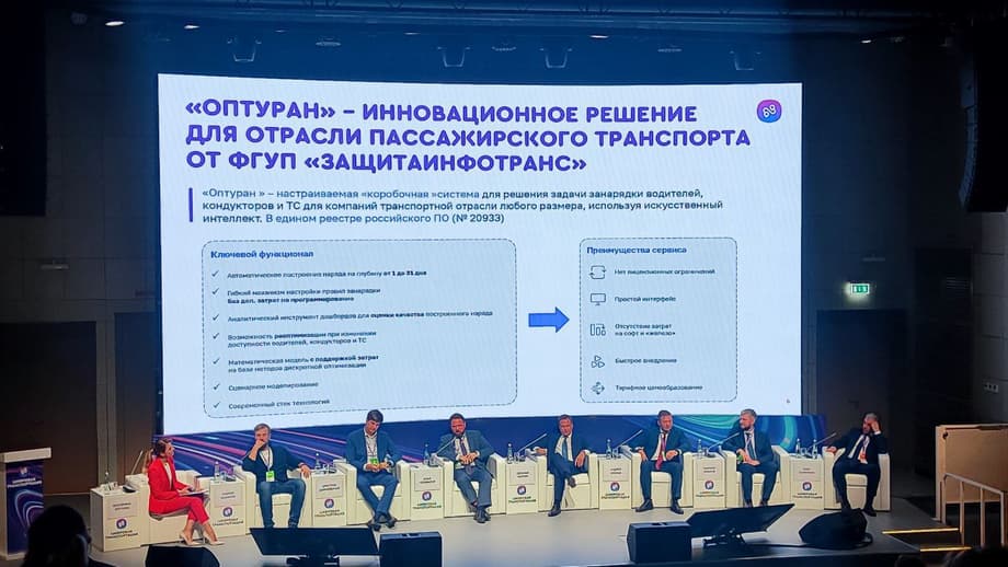 «Оптуран» — настраиваемая «коробочная» система для решения задачи занарядки водителей, кондукторов и ТС для компаний транспортной отрасли любого размера. Она официально признана программным обеспечением, относящимся к сфере искусственного интеллекта.