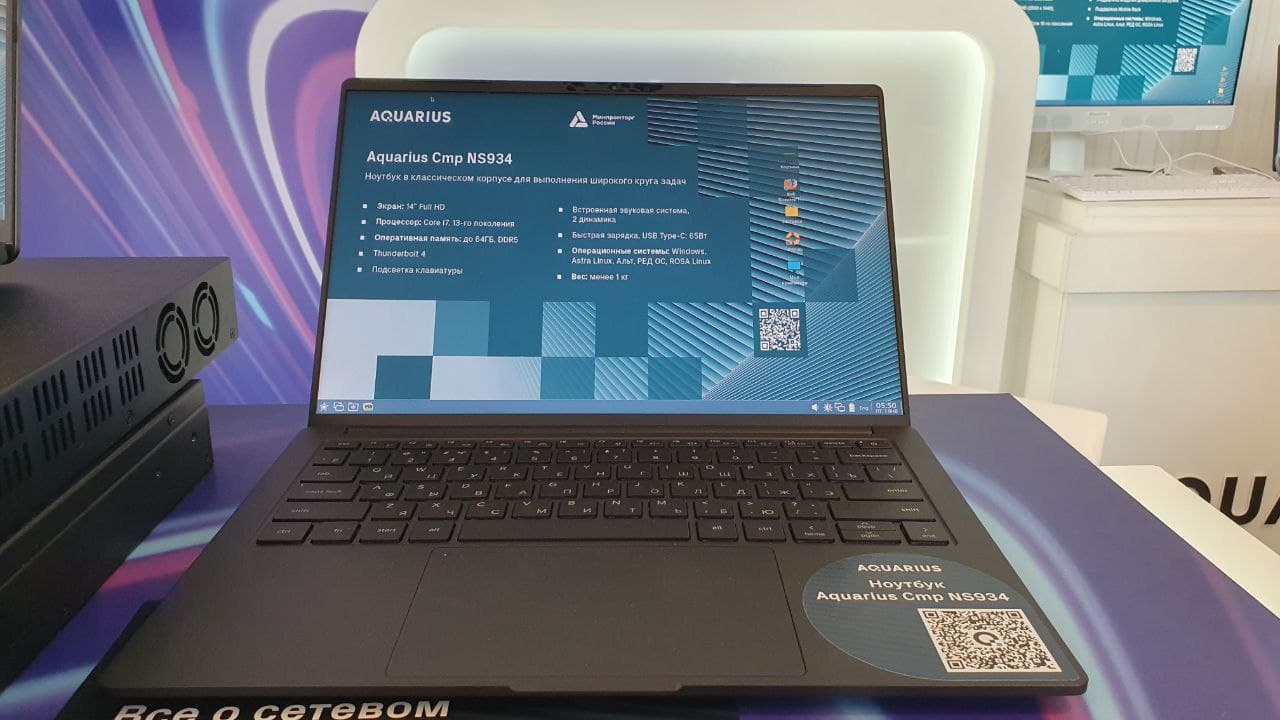 Aquarius Cmp NS934 включён в реестр Минпромторга, он поддерживает четыре российских ОС — Альт, Astra Linux, РОСА Linux и РЕД ОС — плюс Windows. Он имеет диагональ в 14 дюймов, разрешение WUXGA/Full HD (1920×1200).