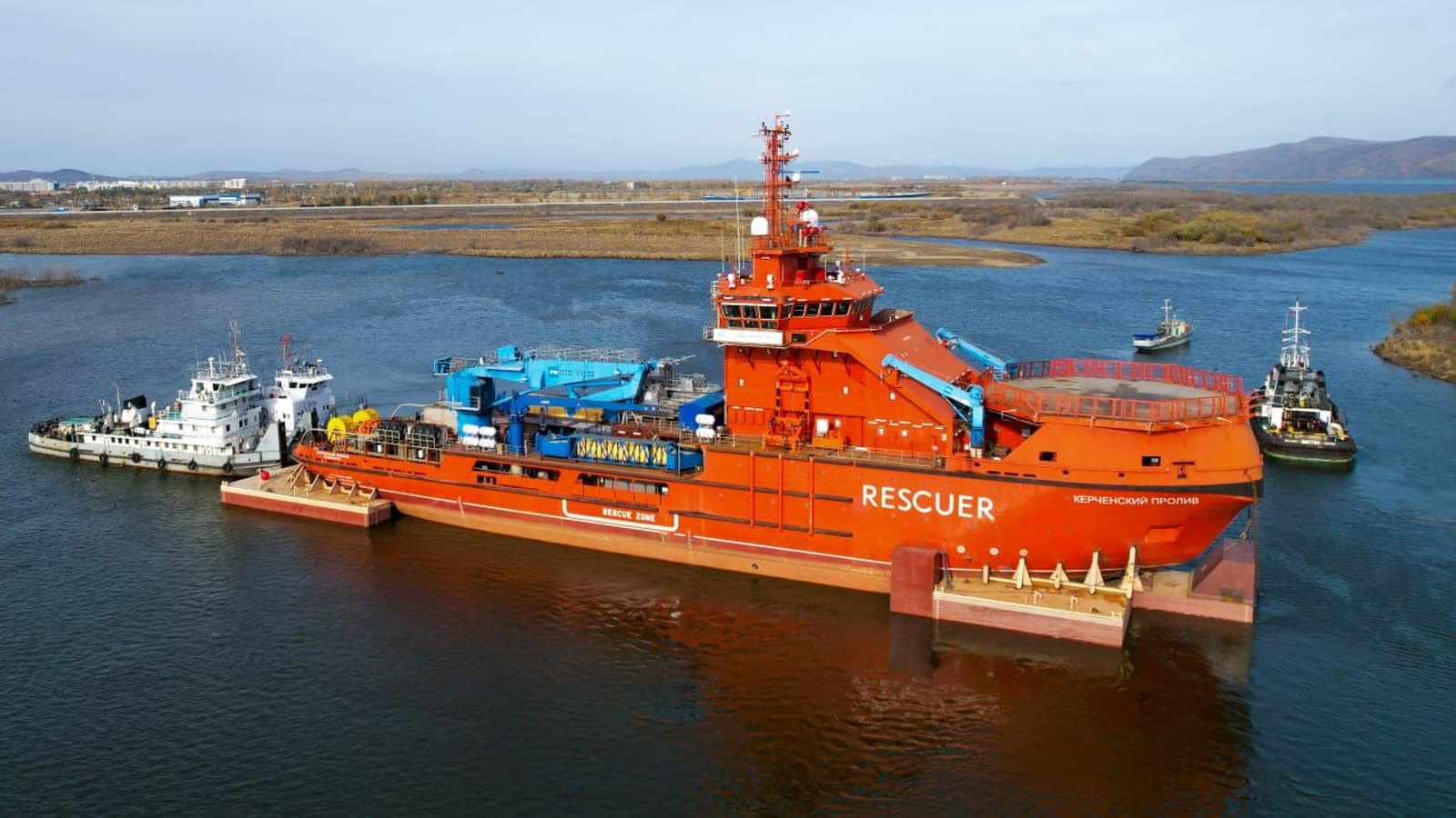 Во Владивосток с Амурского судостроительного завода ОСК направилось многофункциональное аварийно-спасательное судно «Керченский пролив». Оно перемещается речными буксирами и пройдёт 1200 км пути за 20 дней. Чтобы судно дошло благополучно, к нему приварены два изготовленных на АСЗ понтона, которые обеспечат должную осадку при прохождении порогов.