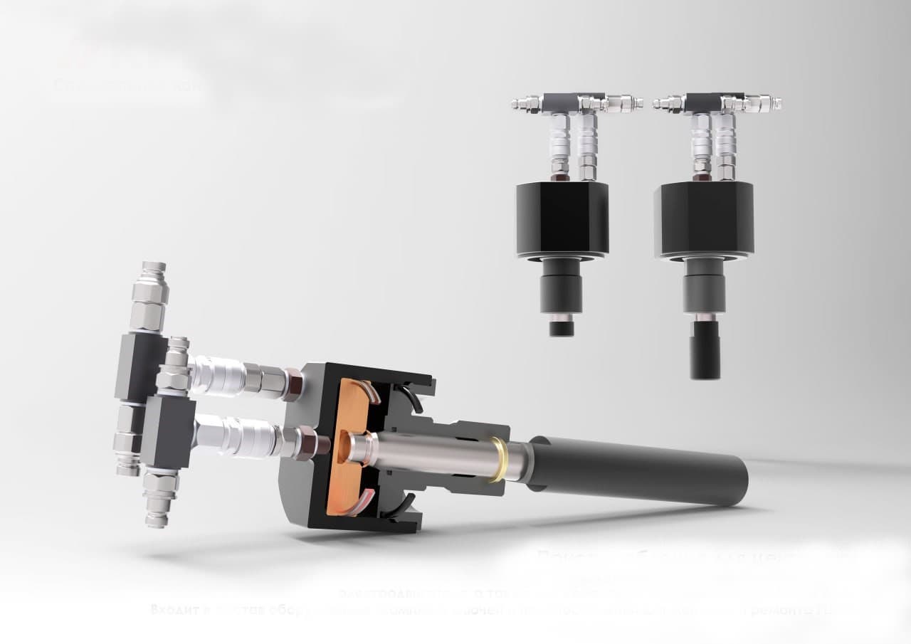 Домкрат поставляется с гидростанцией или ручным гидравлическим насосом, для соединения с которыми используется комплект рукавов высокого и низкого давления с быстроразъемными соединениями.