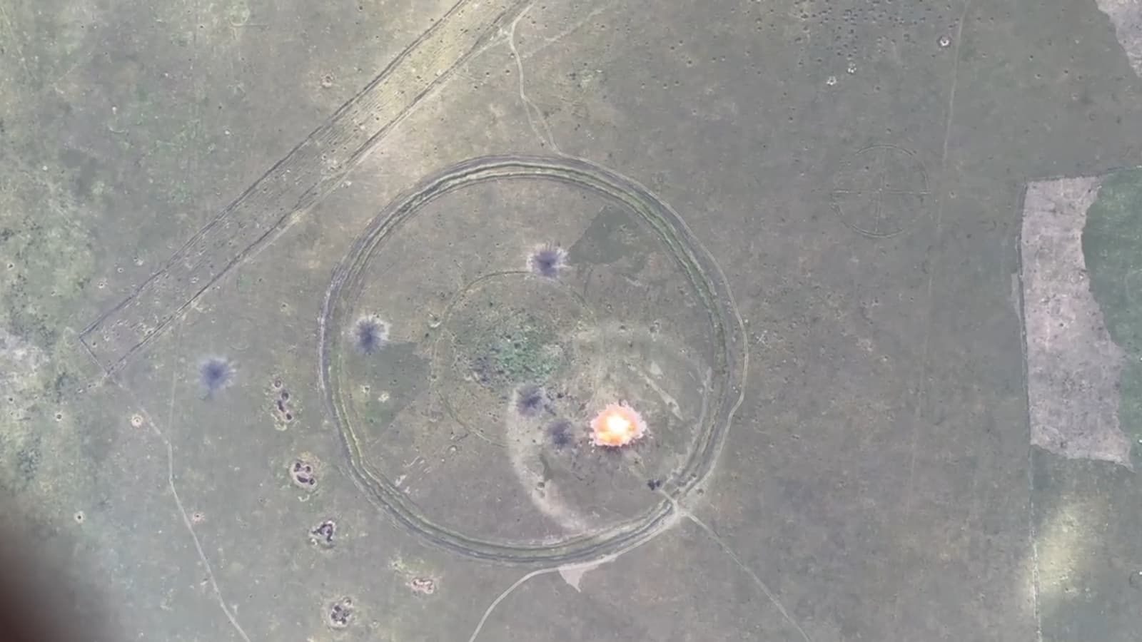 На видео можно заметить, что после детонации снаряда на этом месте возникла огромная ударная волна. С какого именно воздушного средства сбрасывали бомбу, на данный момент неизвестно.