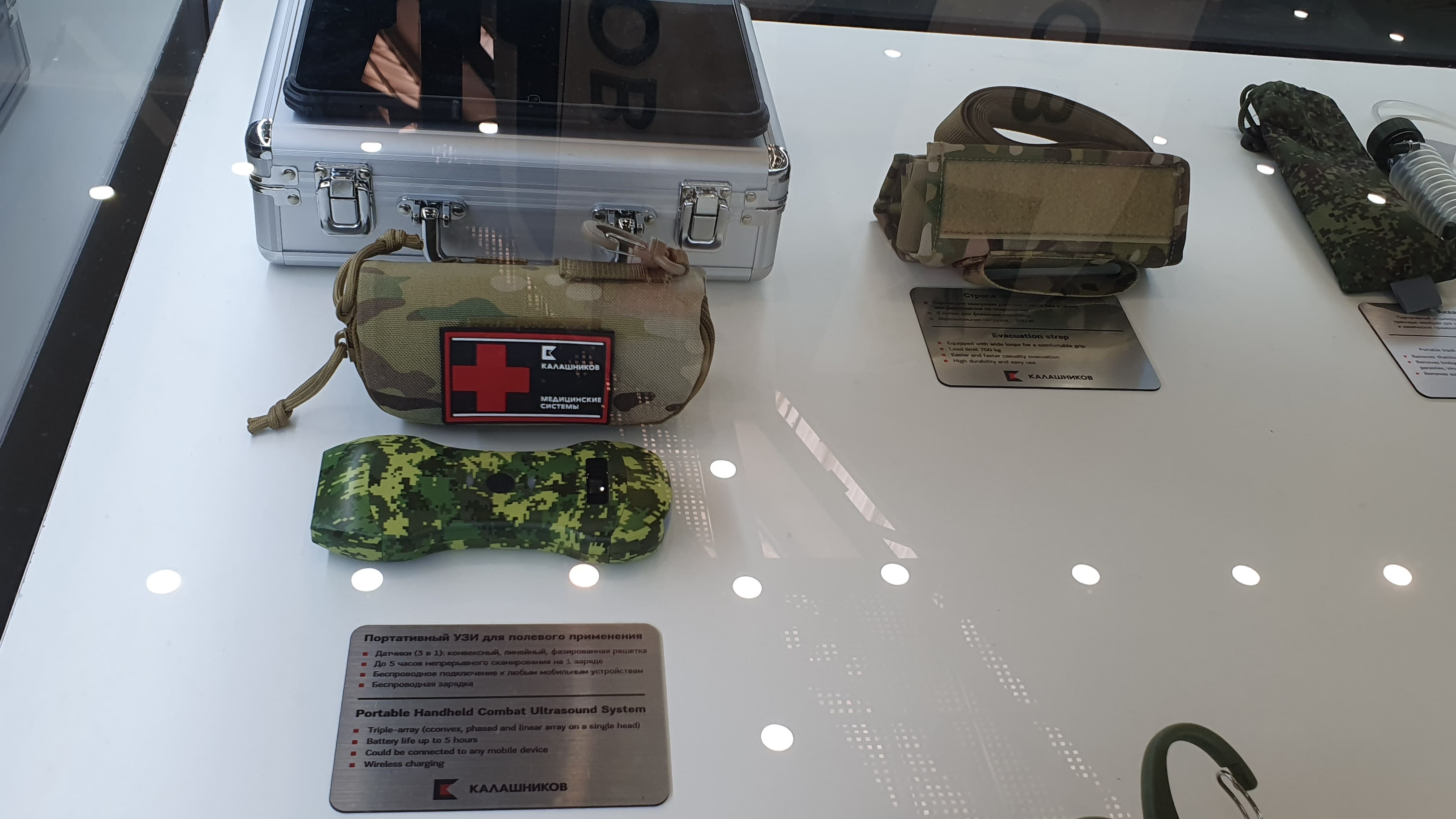Были представлены и другие медицинские инновации концерна для оказания первой помощи на фронте. Например, устойчивый к перепадам температур от -50 до +50 градусов по Цельсию силиконовый жгут «Наш».