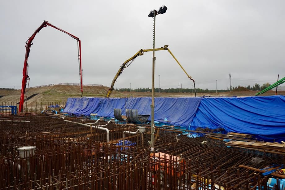 По словам директора программы по объектам Ленинградской АЭС АО «КОНЦЕРН ТИТАН-2» Константина Худякова, для подвоза бетона на объект задействовали 37 миксеров. Бетон укладывали с помощью 4 автомобильных бетононасосов. В фундаментную плиту здания заложили более 700 т арматуры.