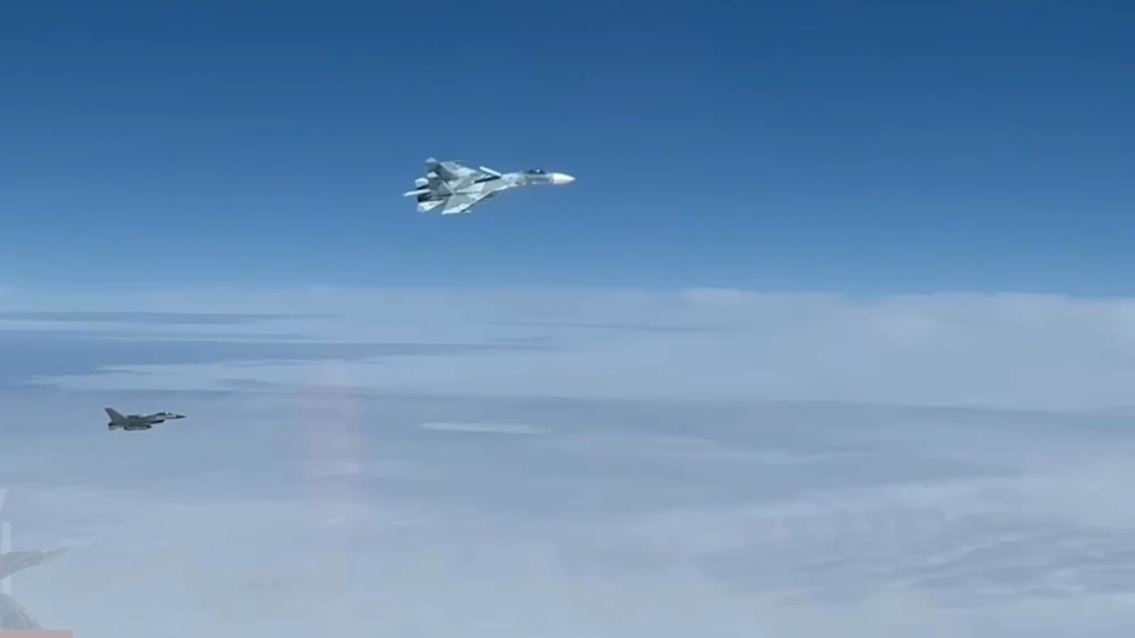 Российский истребитель Су-27 отогнал F-16 неизвестной национальной принадлежности, который слишком близко подошел к важному российскому борту. Кадры появились в социальных сетях.