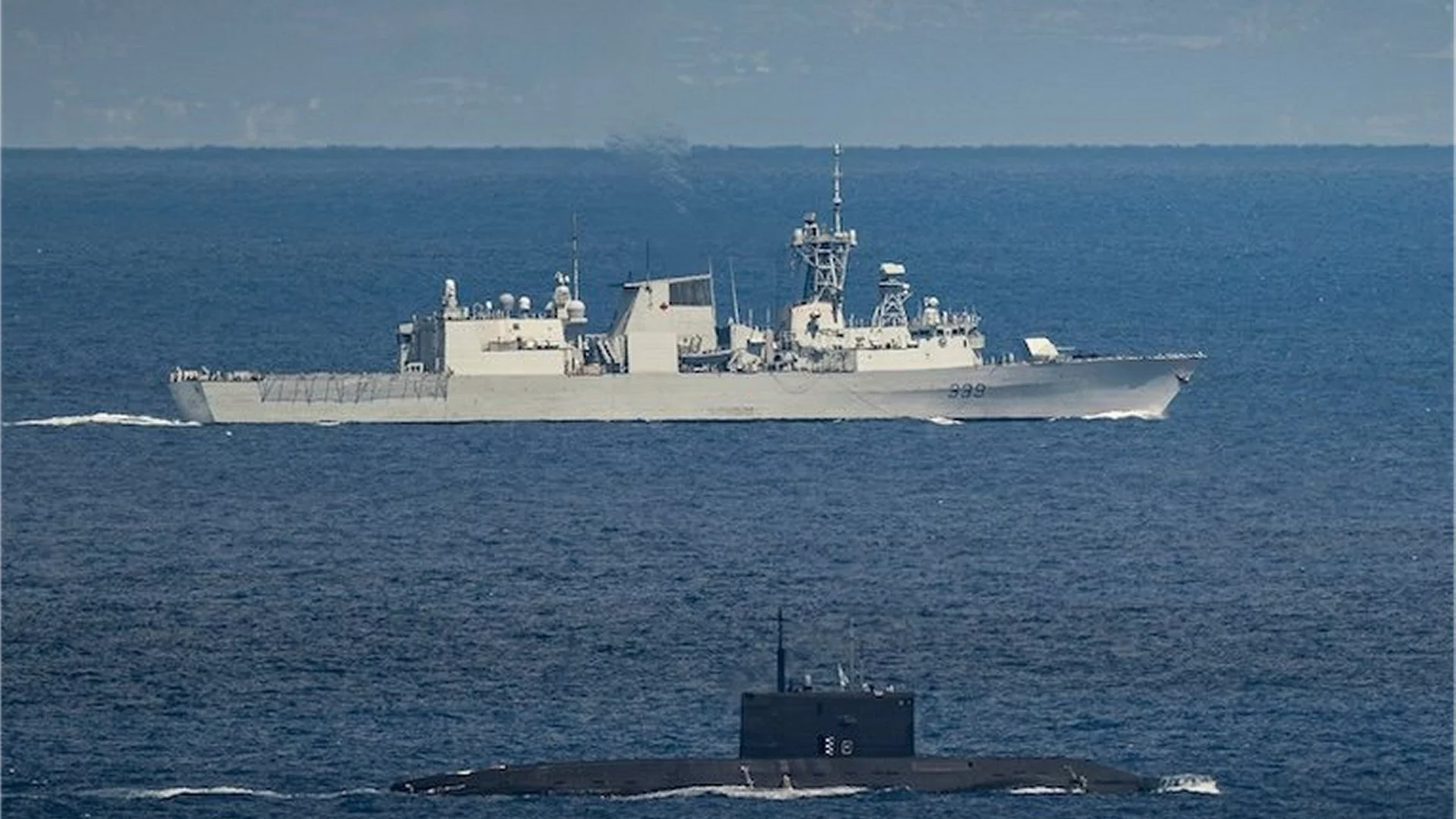Фрегат HMCS Charlottetown класса Halifax Королевского военно-морского флота Канады и, предположительно, российская подводная лодка