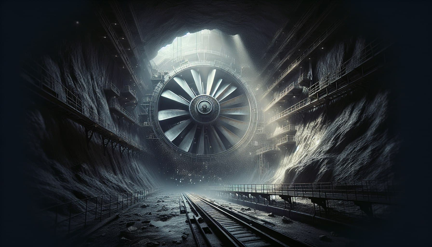 Горный массив послужит корпусом конструкции. Колесо вентилятора расположат горизонтально на базе специальных тележек, передвигающихся по ровной подготовленной поверхности.