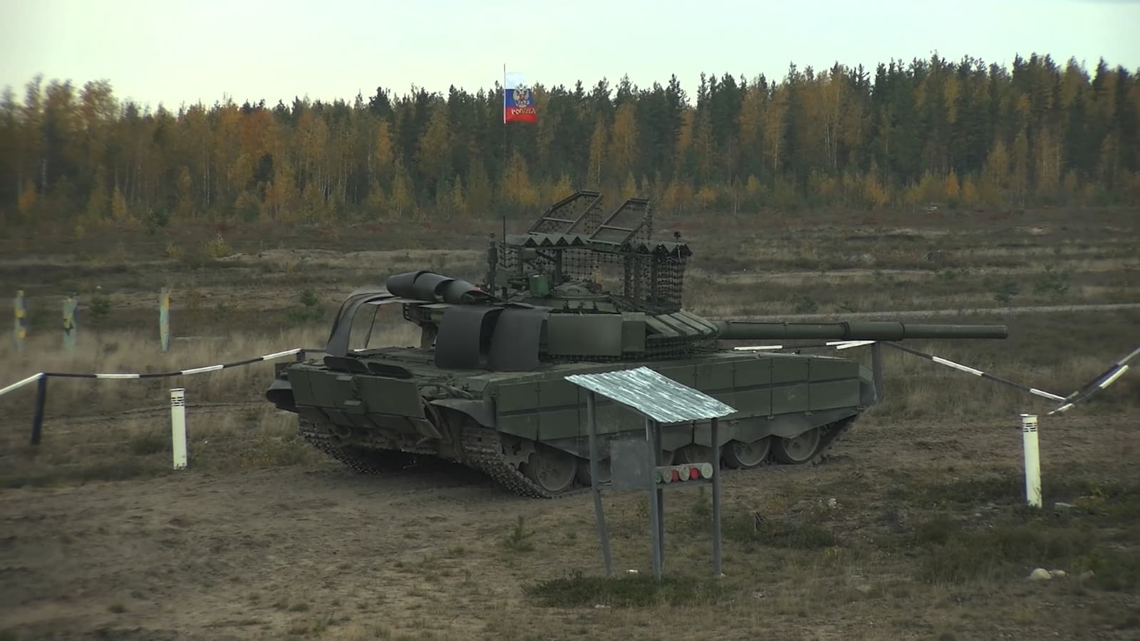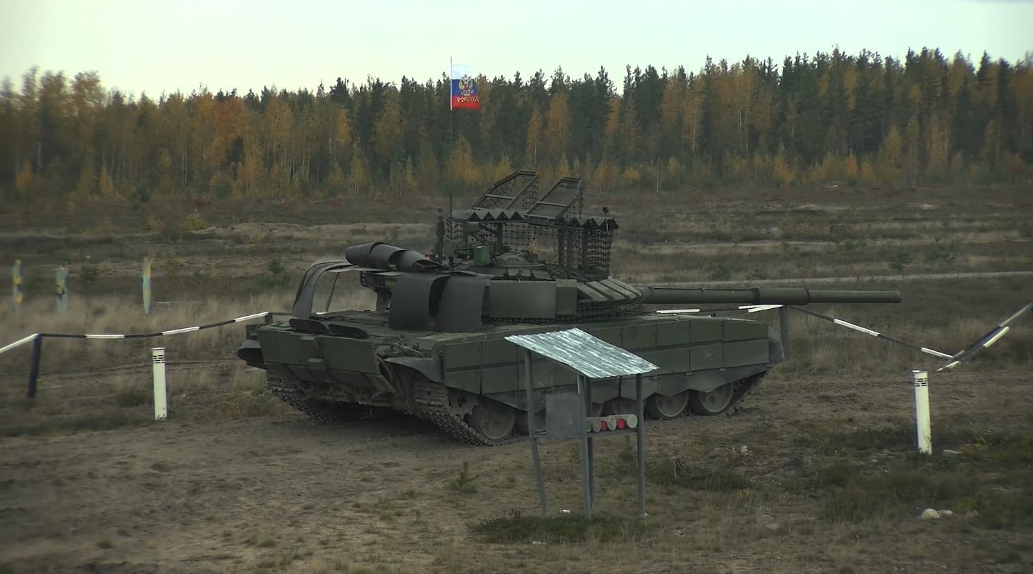 На полигоне в Ленинградской области заметили новейшие танки Т-72Б3М образца 2022 года с заводскими противокумулятивными «козырьками» на базе зигзагообразных двухслойных «пакетов». Они обеспечивают обеспечивающих расфокусировку кумулятивных струй противотанковых гранат, сбрасываемых с дронов.