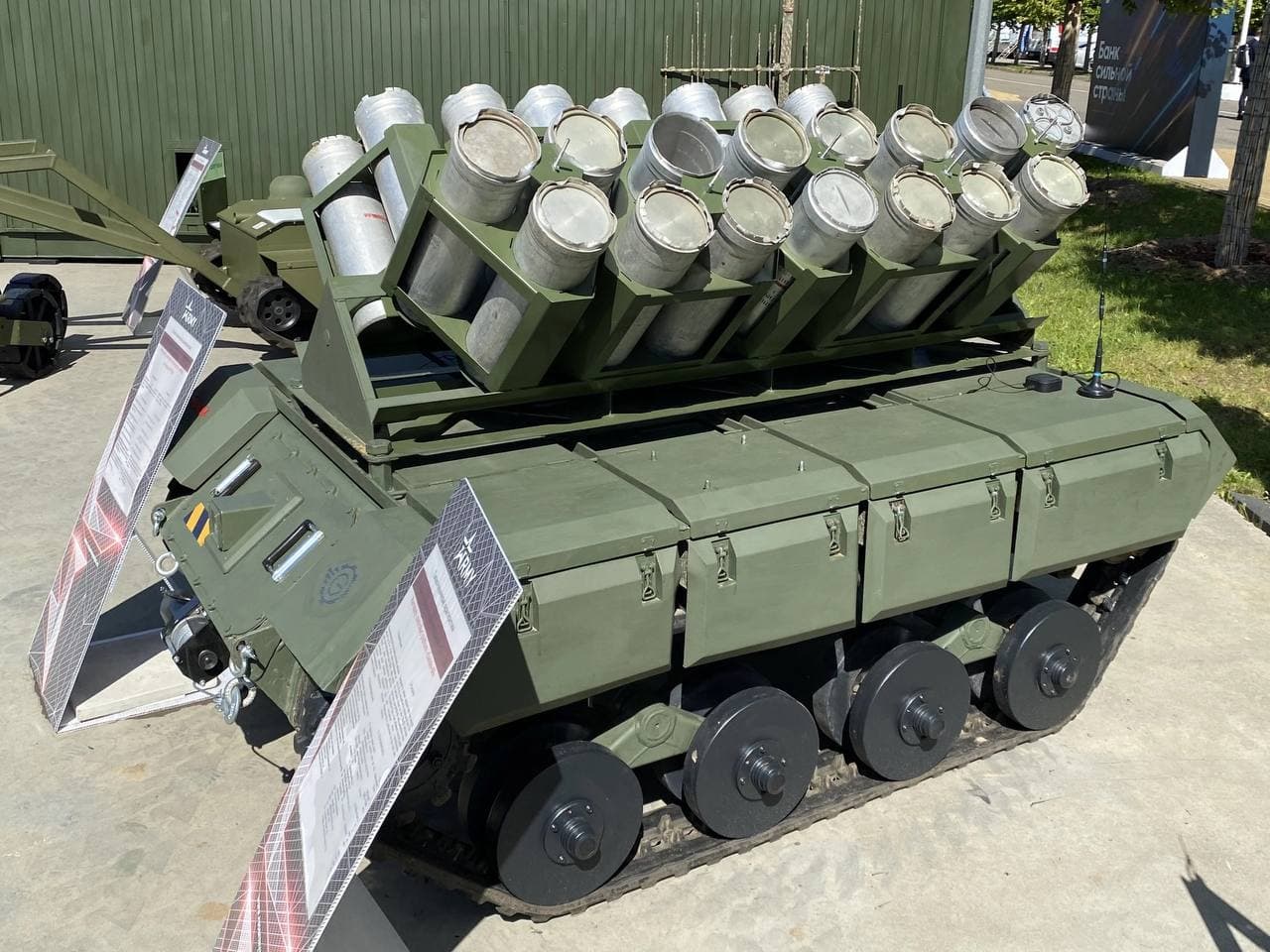 В России разработали роботизированную платформу «Импульс- КПТМ». Наземный беспилотный аппарат предназначен для установки противопехотных, противотанковых и смешанных минных заграждений, буксирования прицепов и техники.