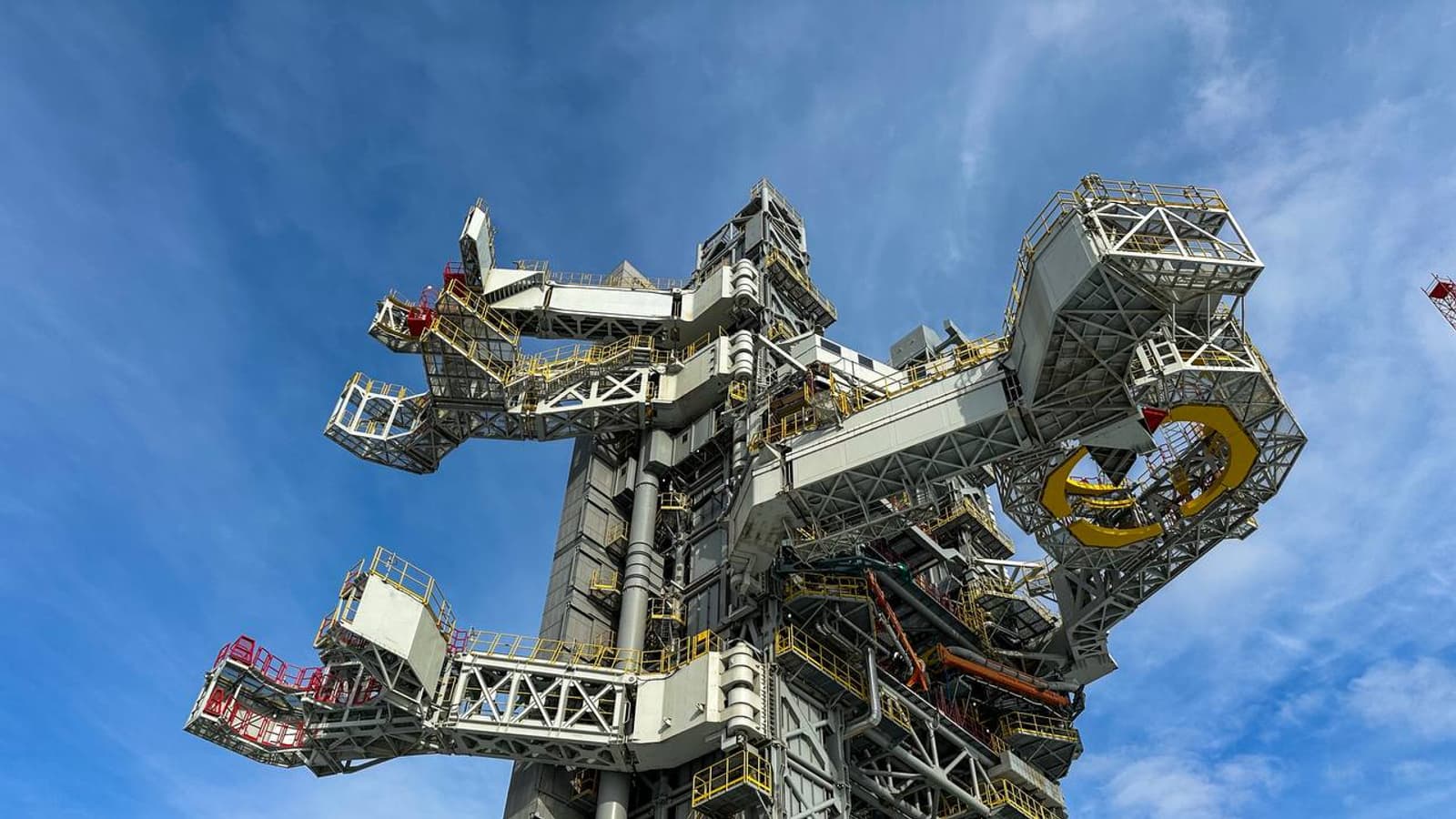 Как отмечают в «Роскосмосе», после апрельского первого пуска тяжёлой ракеты «Ангара-А5» кабель-заправочную башню дооборудовали комплексом обслуживания пилотируемого корабля. Он состоит из галереи посадки экипажа, тамбура-шлюза и чистового отсека. Галерея посадки экипажа представляет собой связывающий лифт для космонавтов и тамбур-шлюз.
