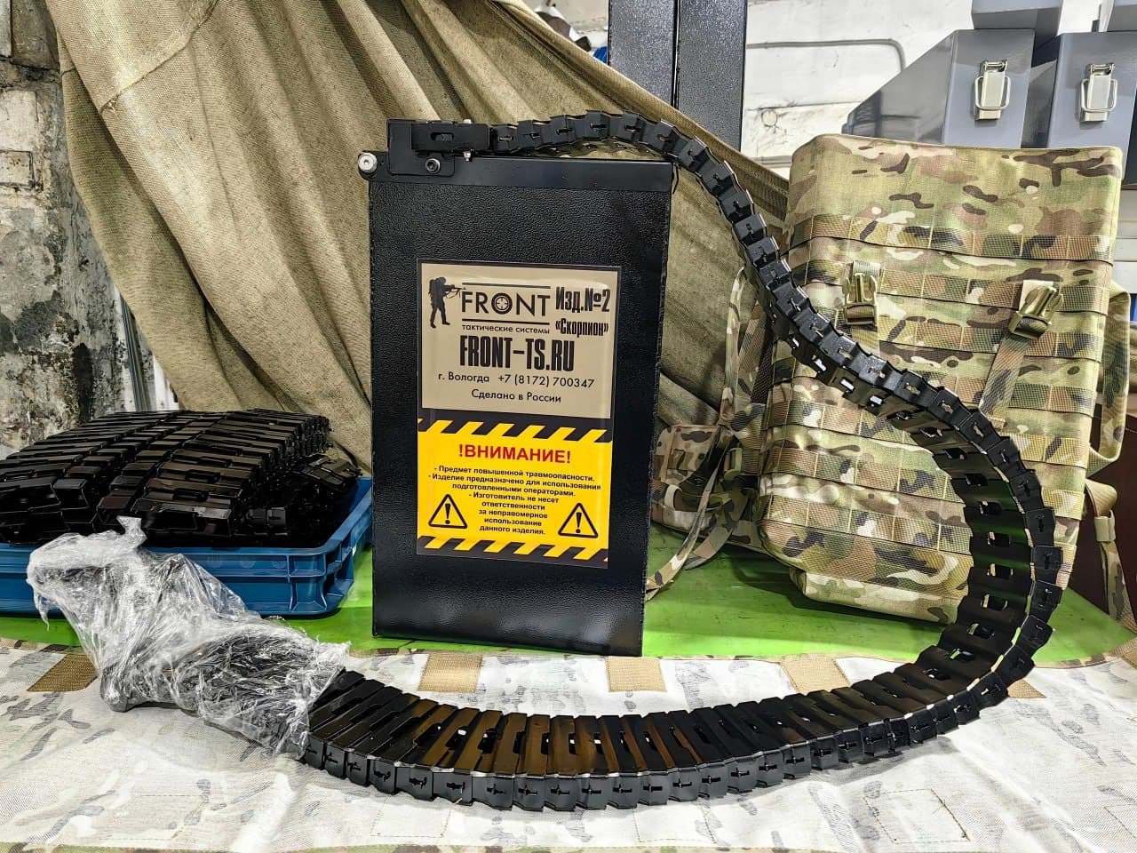 Российские военные получили более 2 тысяч систем бесперебойной подачи патронной ленты «Скорпион». Компания-разработчик — «Фронт — тактические системы».