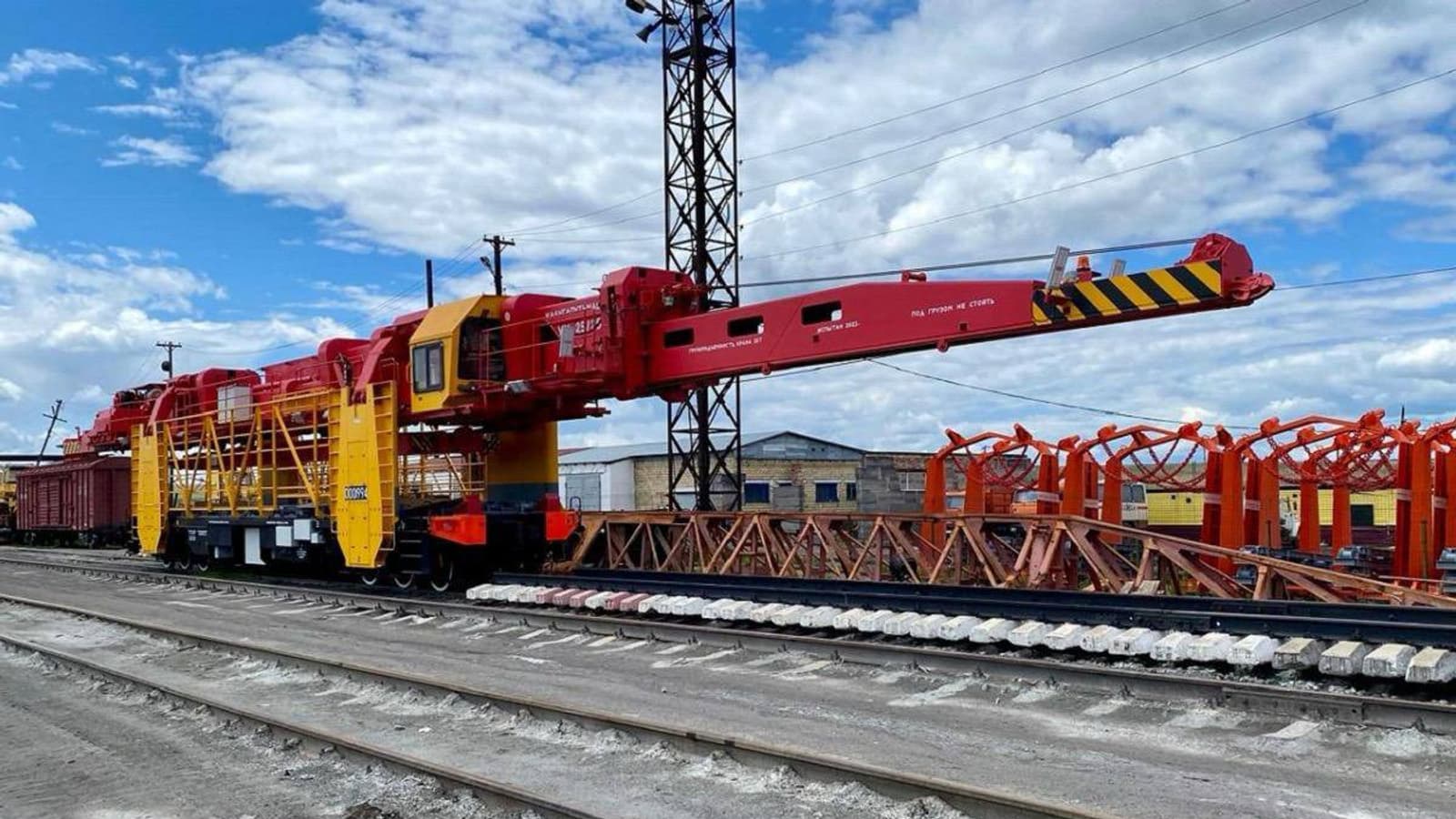 Самоходный укладочный кран выполняет работы по укладке и разборке железнодорожного пути звеньями длиной 25 м и массой 25 т. Модель имеет ряд преимуществ: