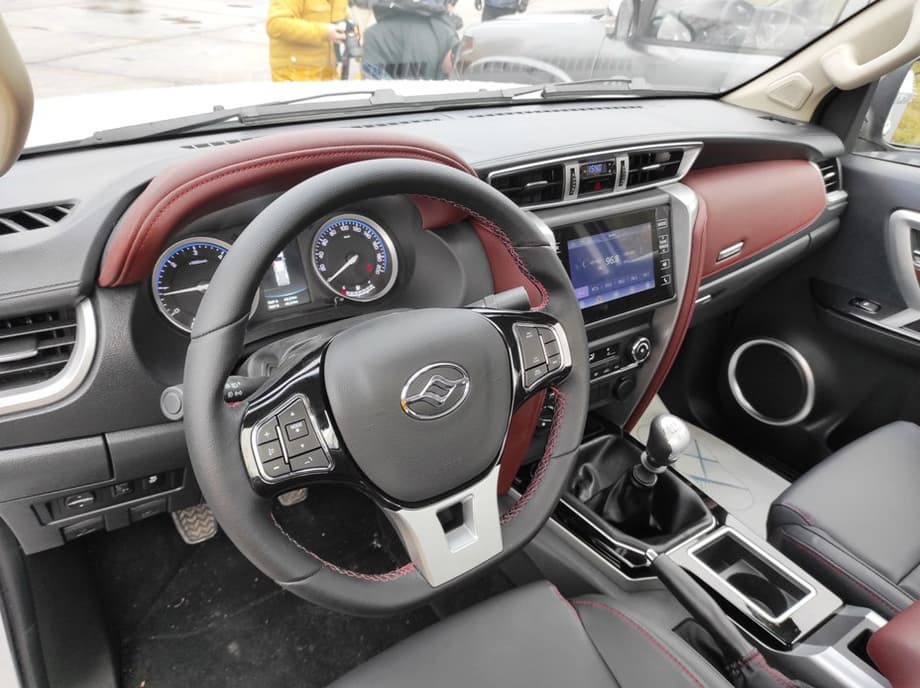 Также от китайского производителя в автомобиле остаются родные рама, рессорная задняя и пружинная передняя подвески, жёсткий подключаемый привод на передние колёса, дизель мощностью 129 л.с. и механическая коробка передач.