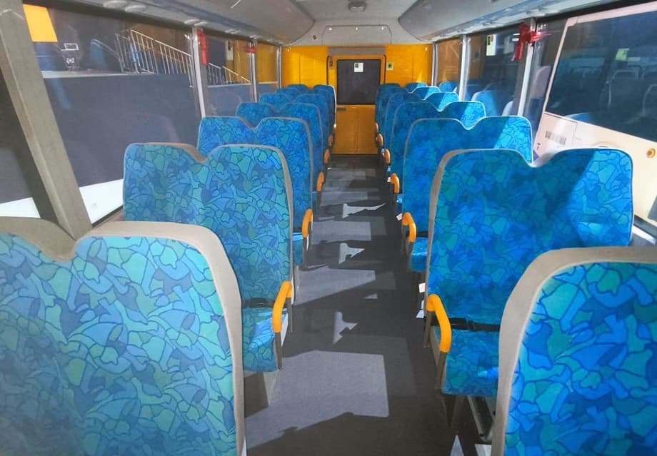 Салон автобуса организован с учетом безопасности и комфорта: 14 рядов сдвоенных сидений оборудованы ремнями безопасности авиационного типа. Для поддержания оптимального микроклимата над каждым рядом предусмотрены дефлекторы системы вентиляции, которая включает в себя как отопление, так и кондиционирование воздуха. Рабочее место водителя выполнено в лаконичном стиле, с минимальным набором необходимого оборудования. Установленная коробка передач, судя по представленным снимкам, является механической.