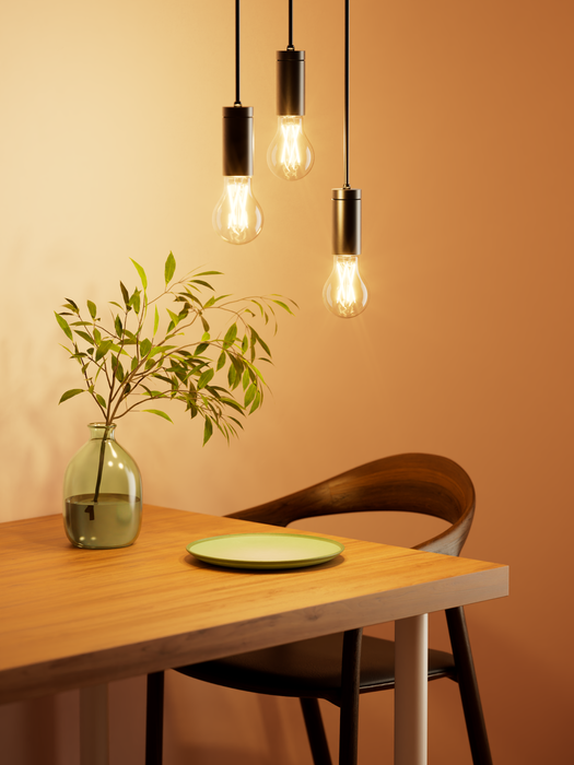 К обновленным лампочкам добавили ещё три модели: для подвесных потолков — RGB-лампочку с цоколем GX53, для дизайнерских светильников и открытых люстр — филаментную лампу Е27 с холодным тёплым белым светом, а для больших пространств с одним источником света — обновленную версию RGB-лампы E27 повышенной яркости. Все они работают на протоколе Matter.
